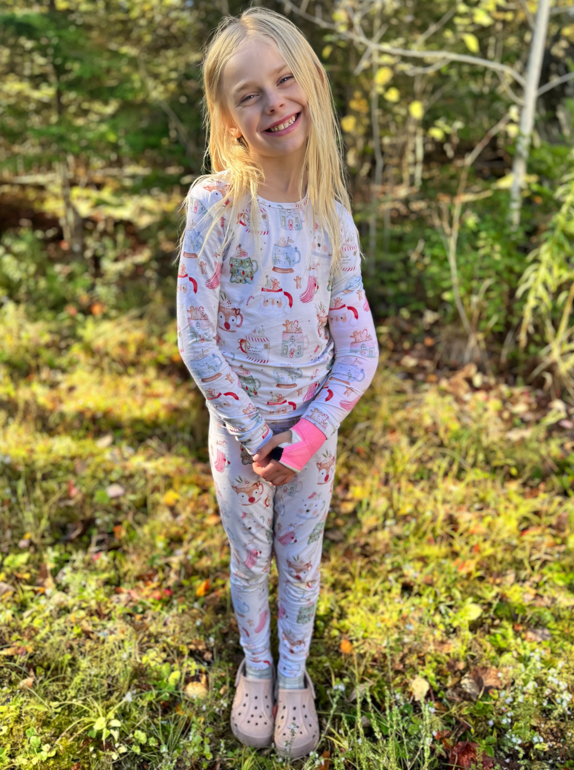 Cozy up this season in our ultra-soft Merry Mugs two-piece bamboo pajama set. Featuring an adorable festive mug print and made from our signature breathable bamboo fabric, this set is perfect for hot cocoa nights, holiday movie marathons, and lazy winter mornings. Naturally hypoallergenic and temperature-regulating, these jammies keep your little one comfy all night long.